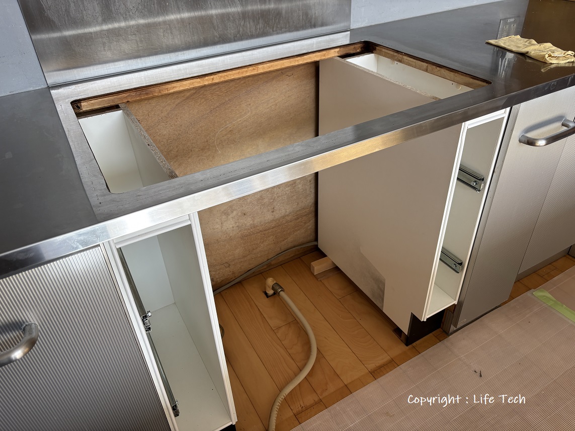 5cmかさ上げ(台輪作成)で対応となり食洗機のケコミ立ち上がり寸法と