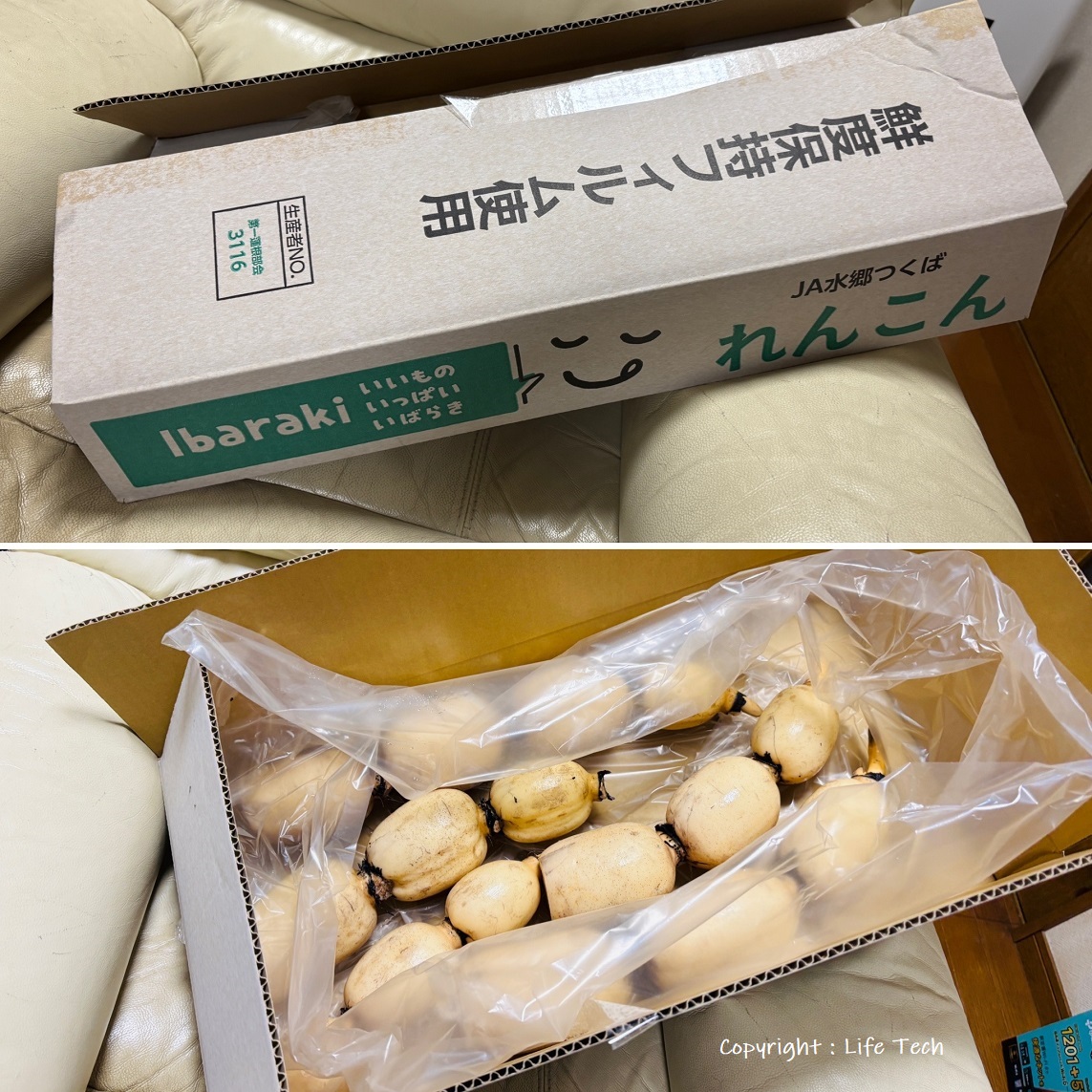 帰宅して開けてみると立派なレンコンがぎっしり!