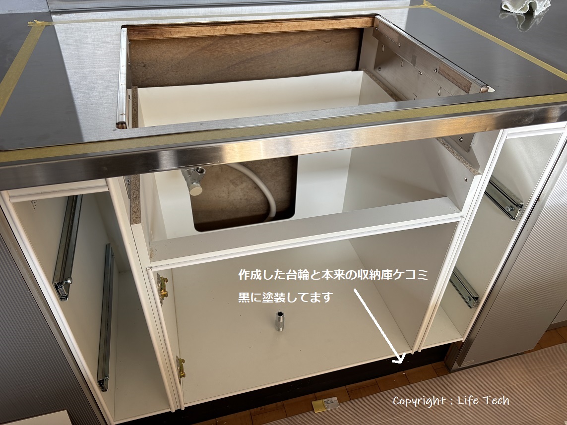 今回はコンロ下も収納庫ってことでこちらも同じように5cmかさ上げ