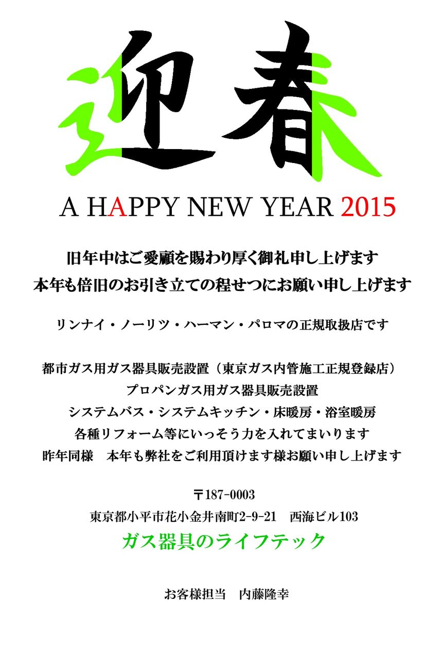ガス器具のライフテック 内藤です