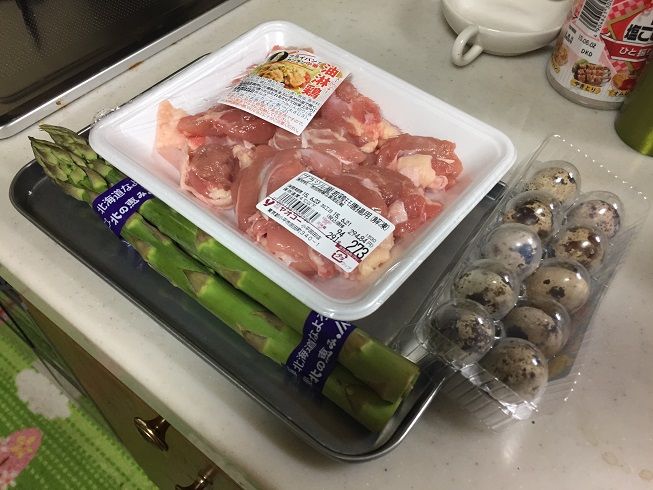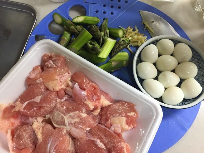 大好きなトリモモ・アスパラ・ウズラ・ショウガ(1/2)