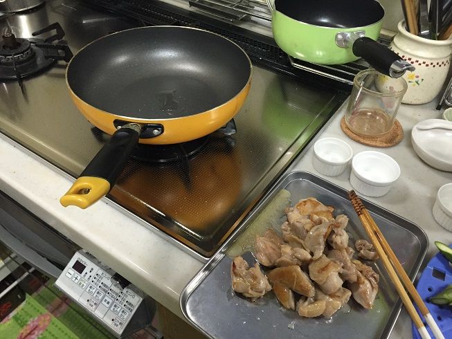 で、その間に一口大に切った鶏肉に塩コショウを適量