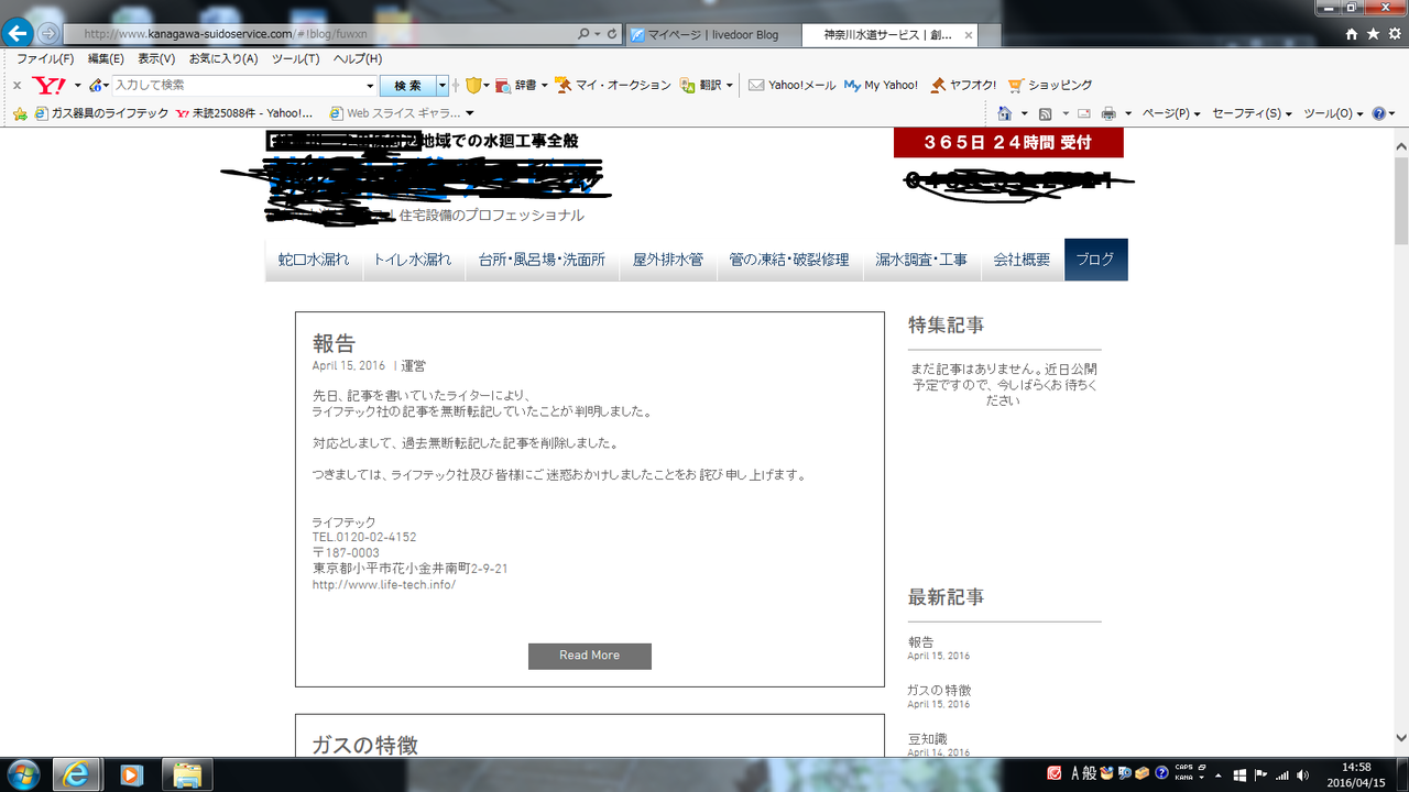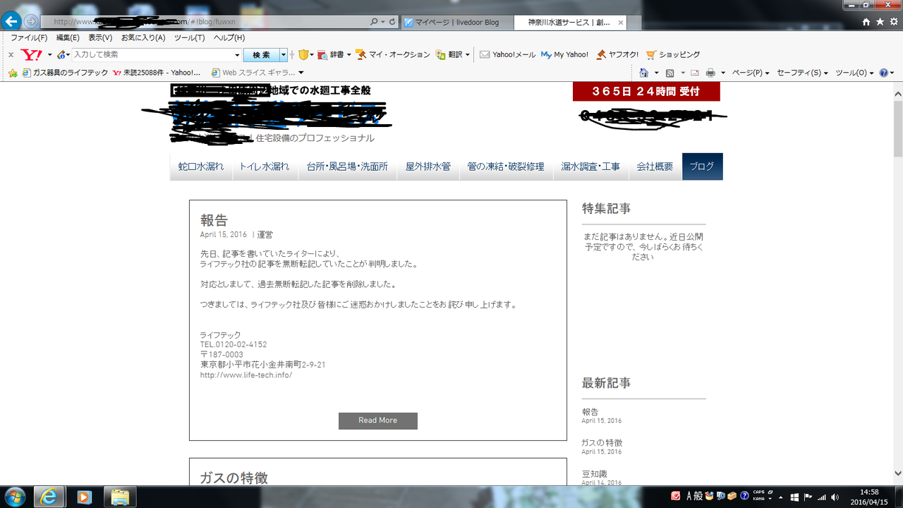 ライフテックにはブログ記事の内容のお問い合わせが結構ございます