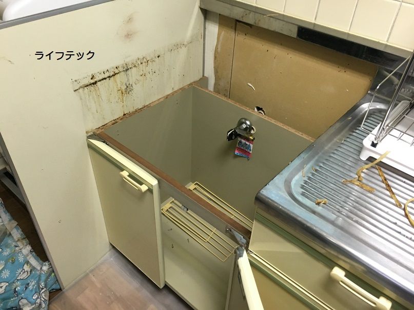 今回はビルトインコンロへ交換しますの収納も取り外して清掃をライフテックにて行います