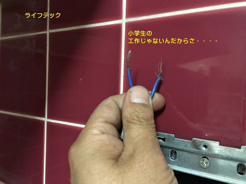 端子台にネジで配線をとめるのですが、むき出し配線をそのままって現場、
