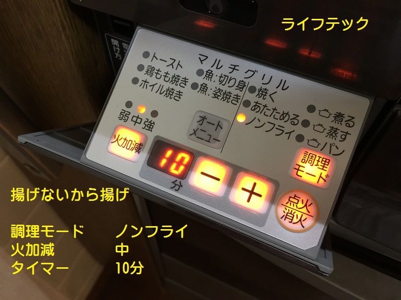 ノンフライモード 火加減中 タイマー10分