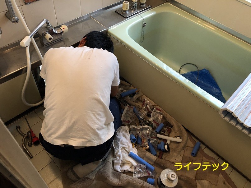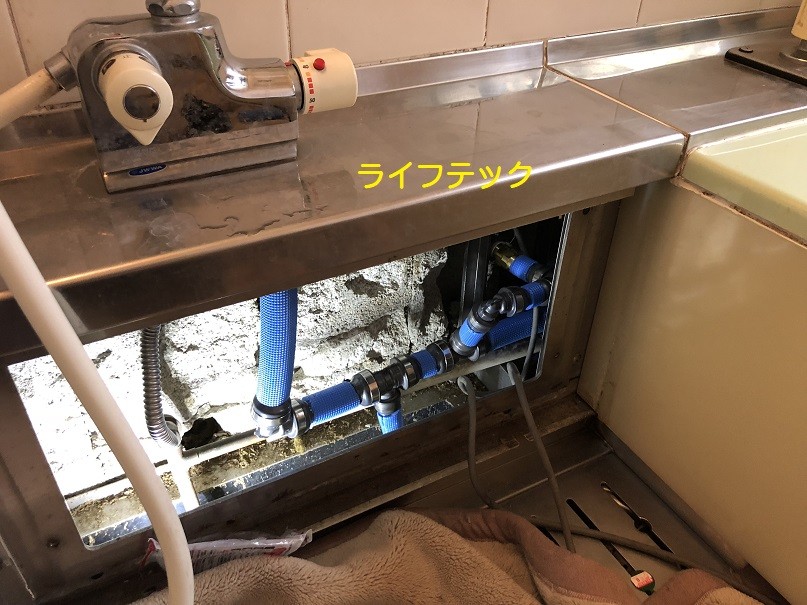 お風呂の水栓への水の配管が鉄管で、こちらもサビが出ている・・・・・