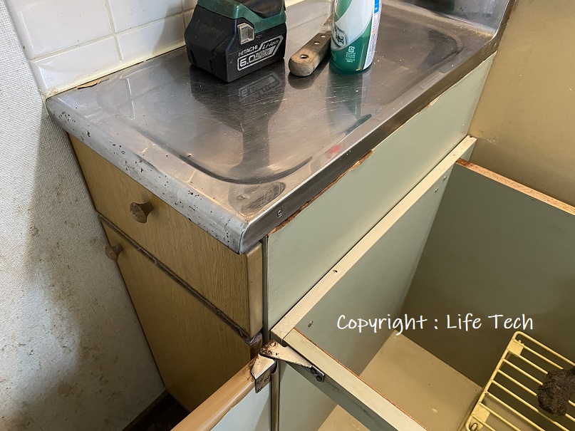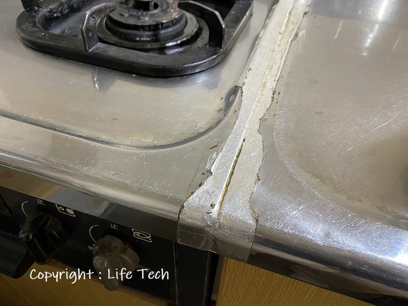 システムキッチンのように1枚天板になっていないため