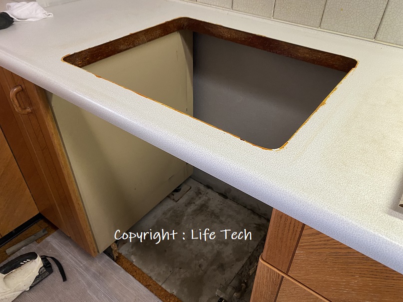 このキッチンワークトップ開口部の寸法が足らんのですよ!