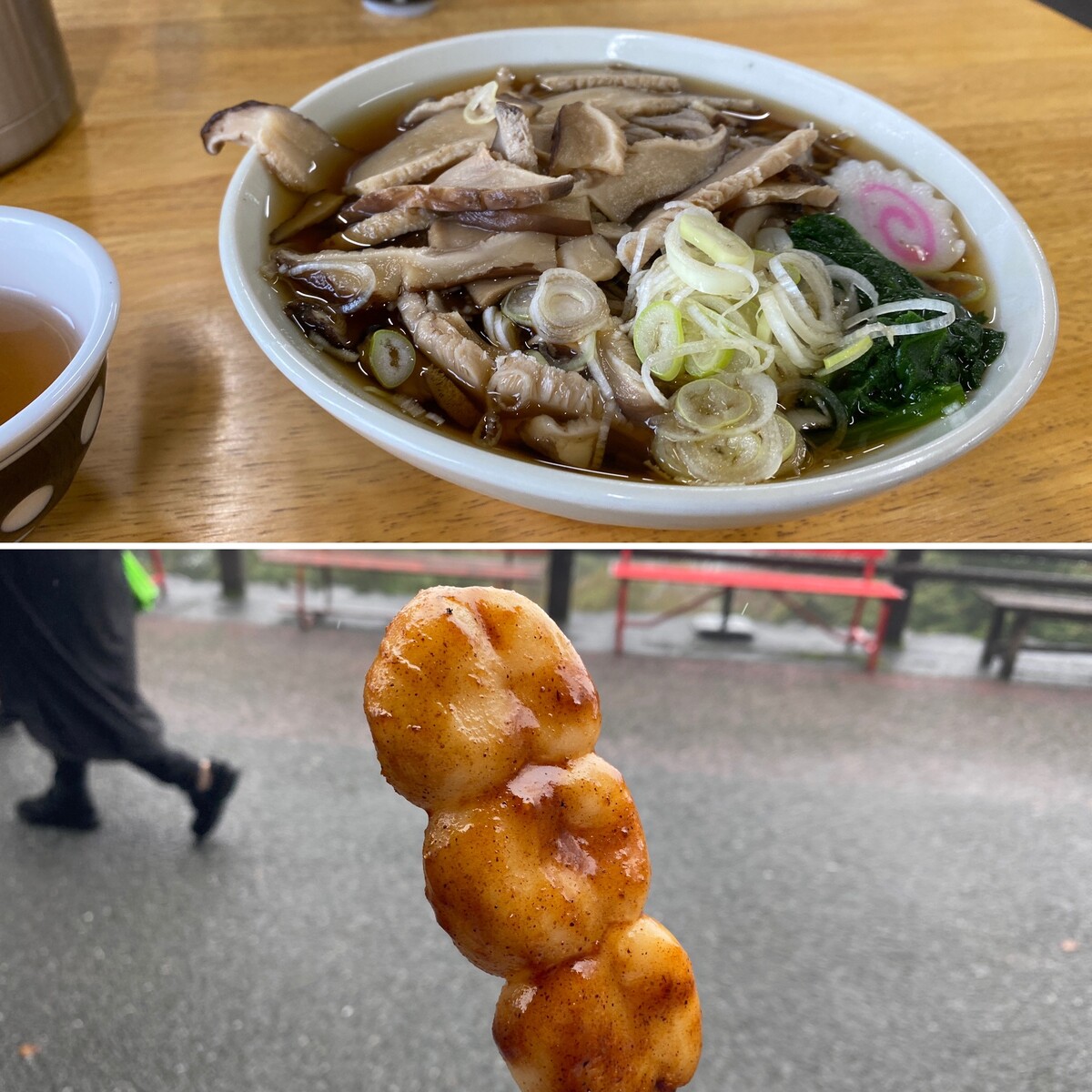 あたたかいシイタケ蕎麦と団子でほっこりです