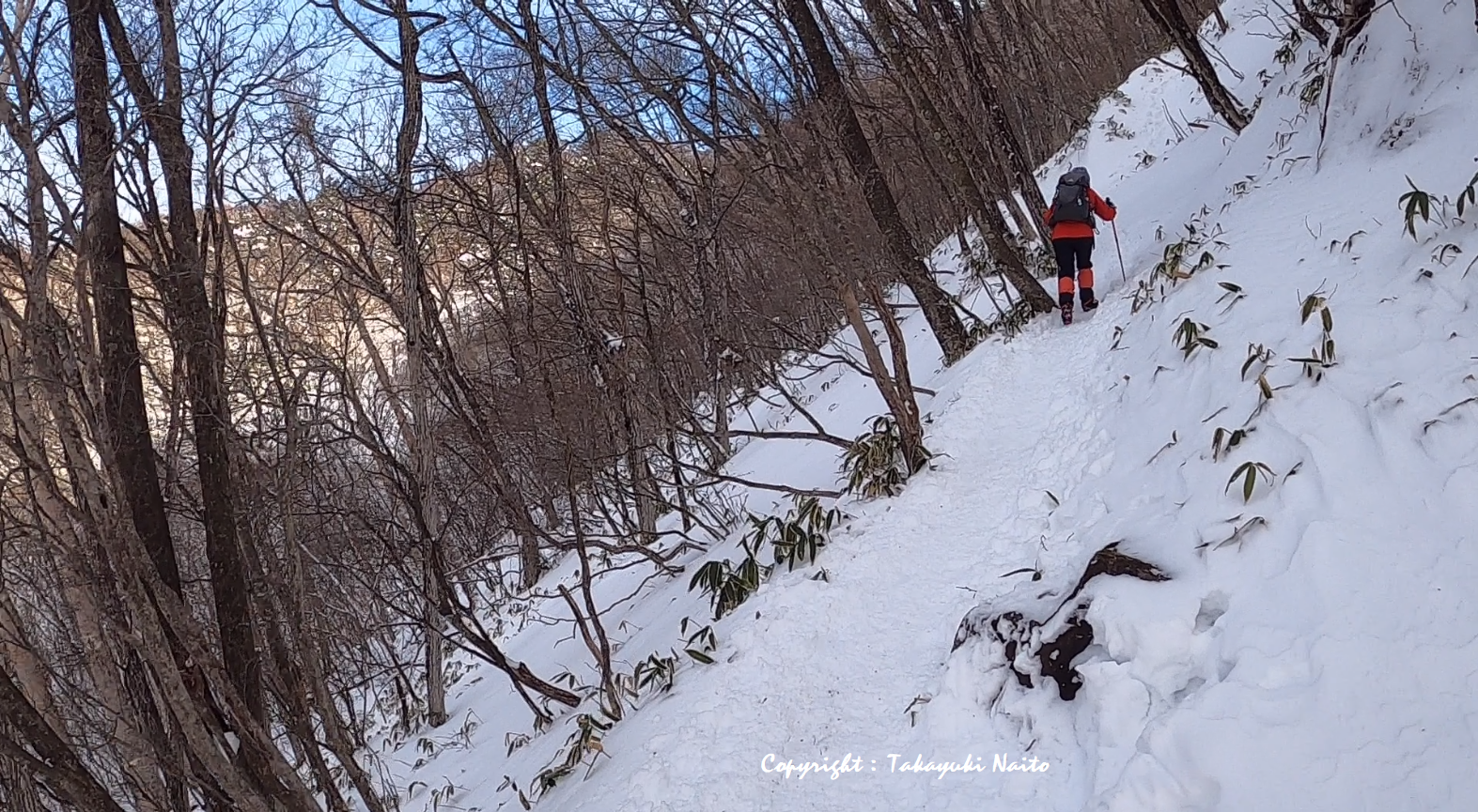いきなりの急登なのですが、岩もだいぶ雪で隠れ