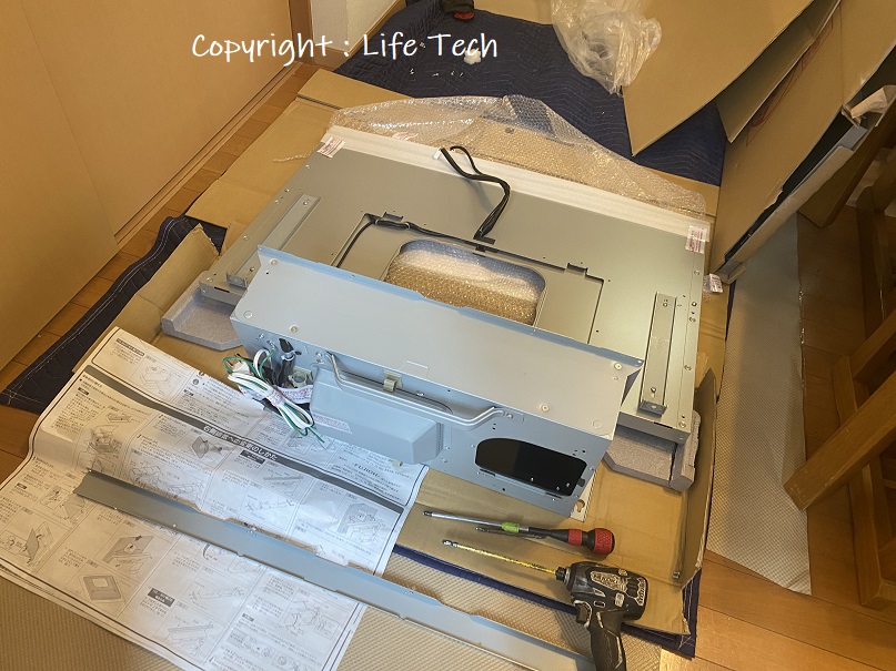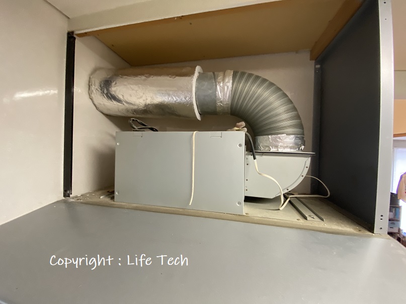 配線の抜き差しから始めレンジフード上部にあるファンを外し