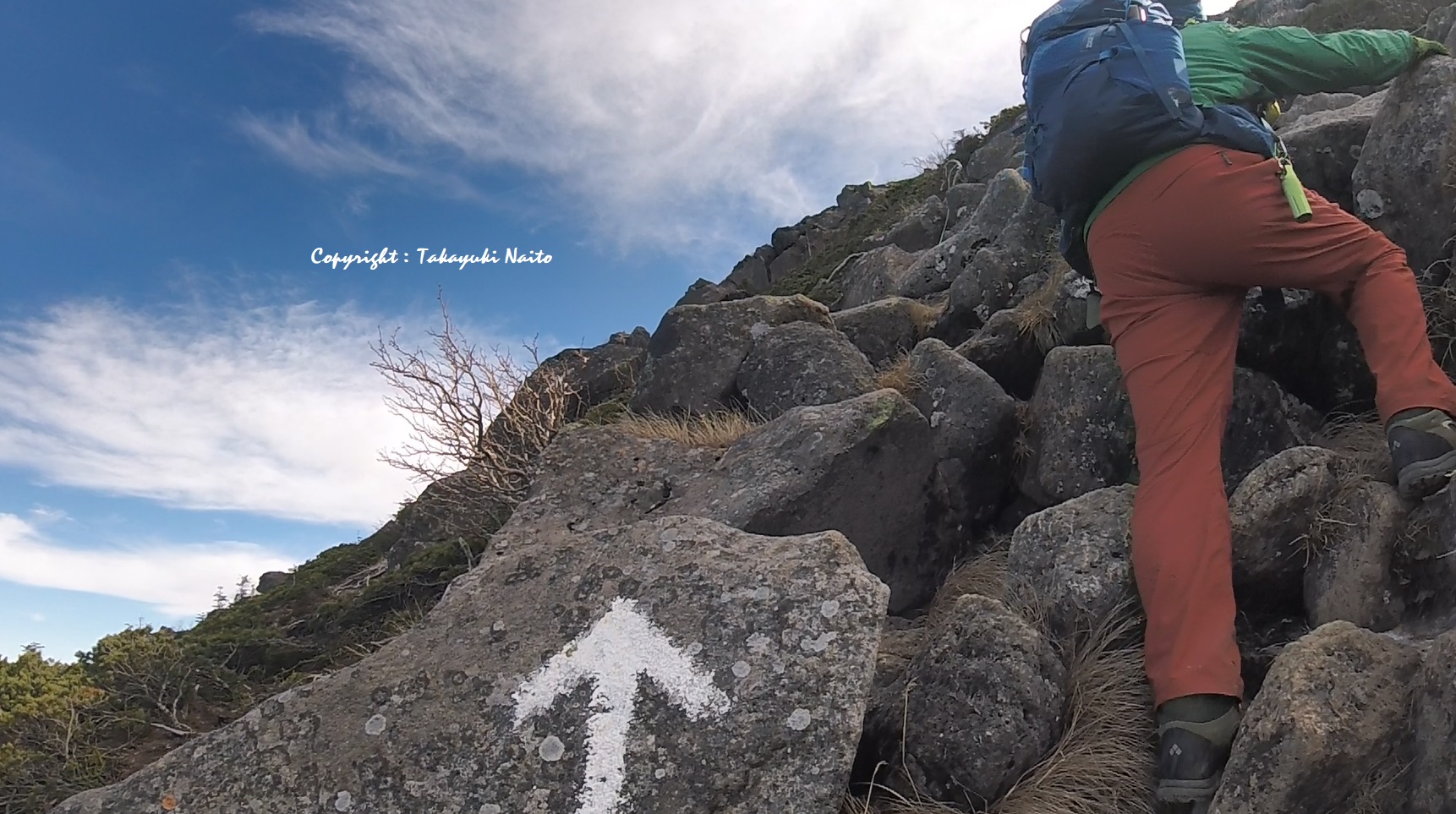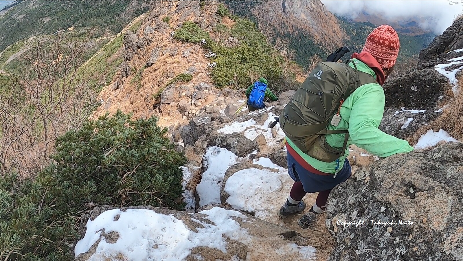 登りの岩 下りの雪交じりの岩 を慎重に進みまして