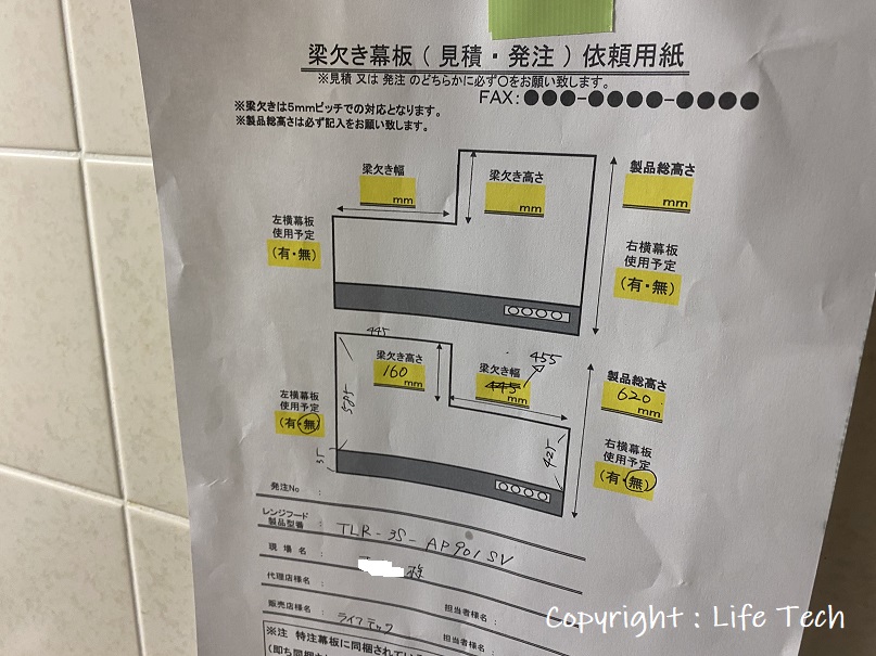 梁欠き対応が必要なレンジフード現場です