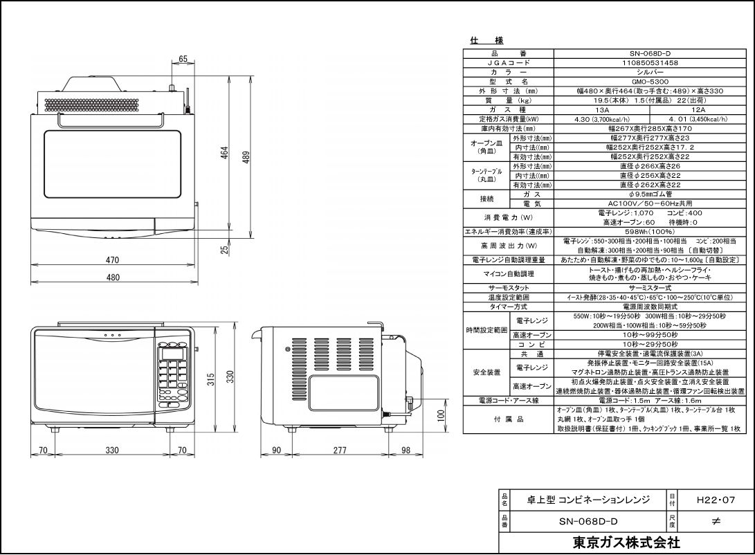 既存器具はナショナルの一体型レンジ NE-BB105