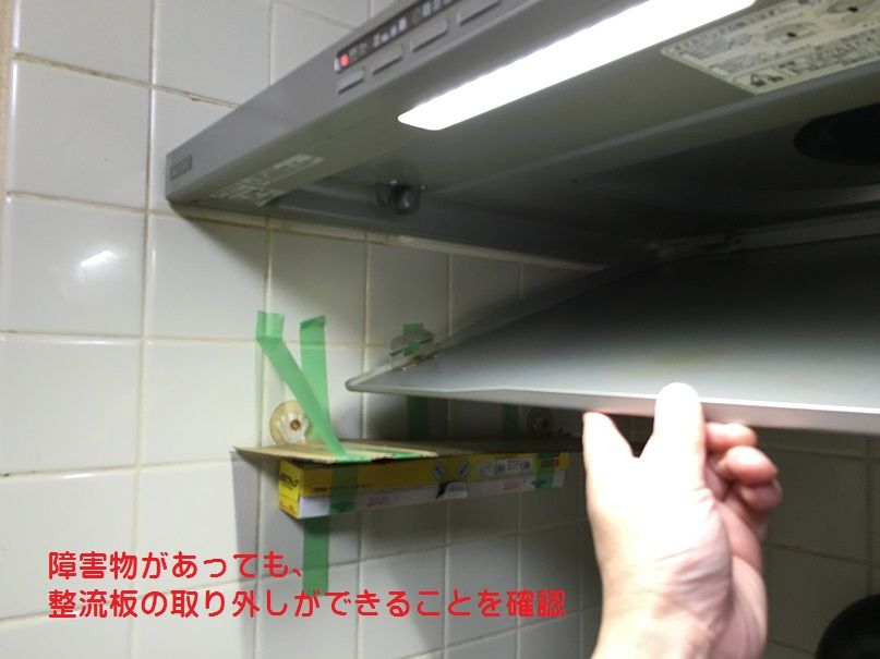 「このレンジフードですが、ブーツを残して中の金属換気扇だけ交換すれば使えますよ!」