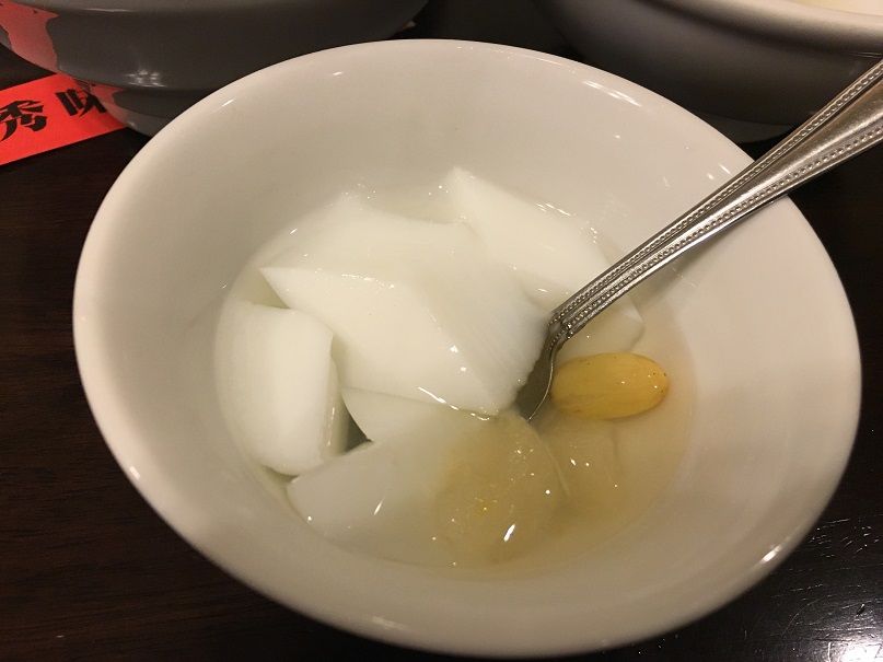 お店の人がそんな私を不便に思ったのか、途中でスープをサービスしてくれた(^'^)