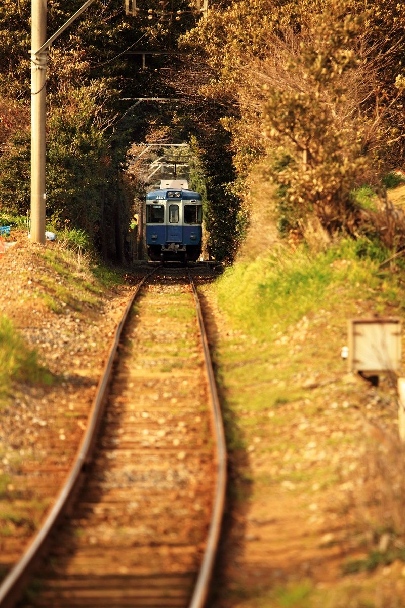 林のトンネルの奥から「カタンコトン・カタンコトン」って聞こえてきます