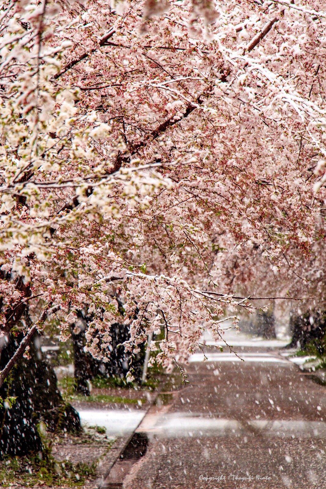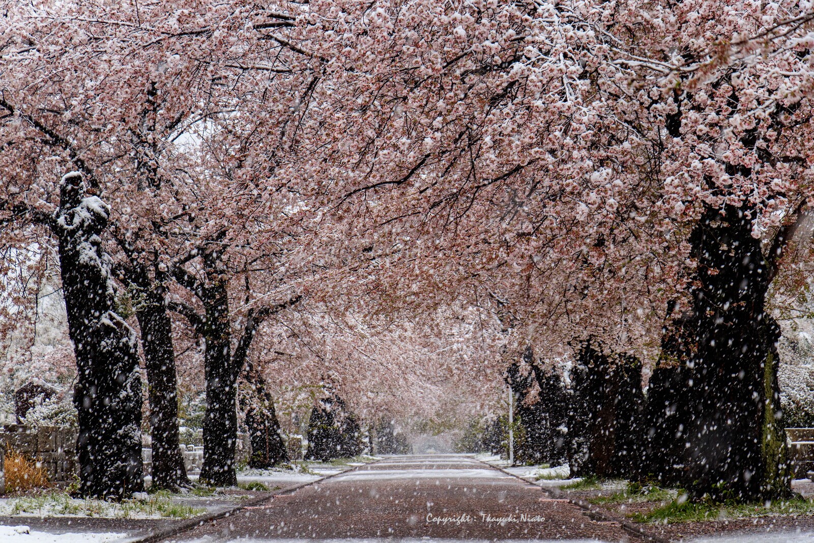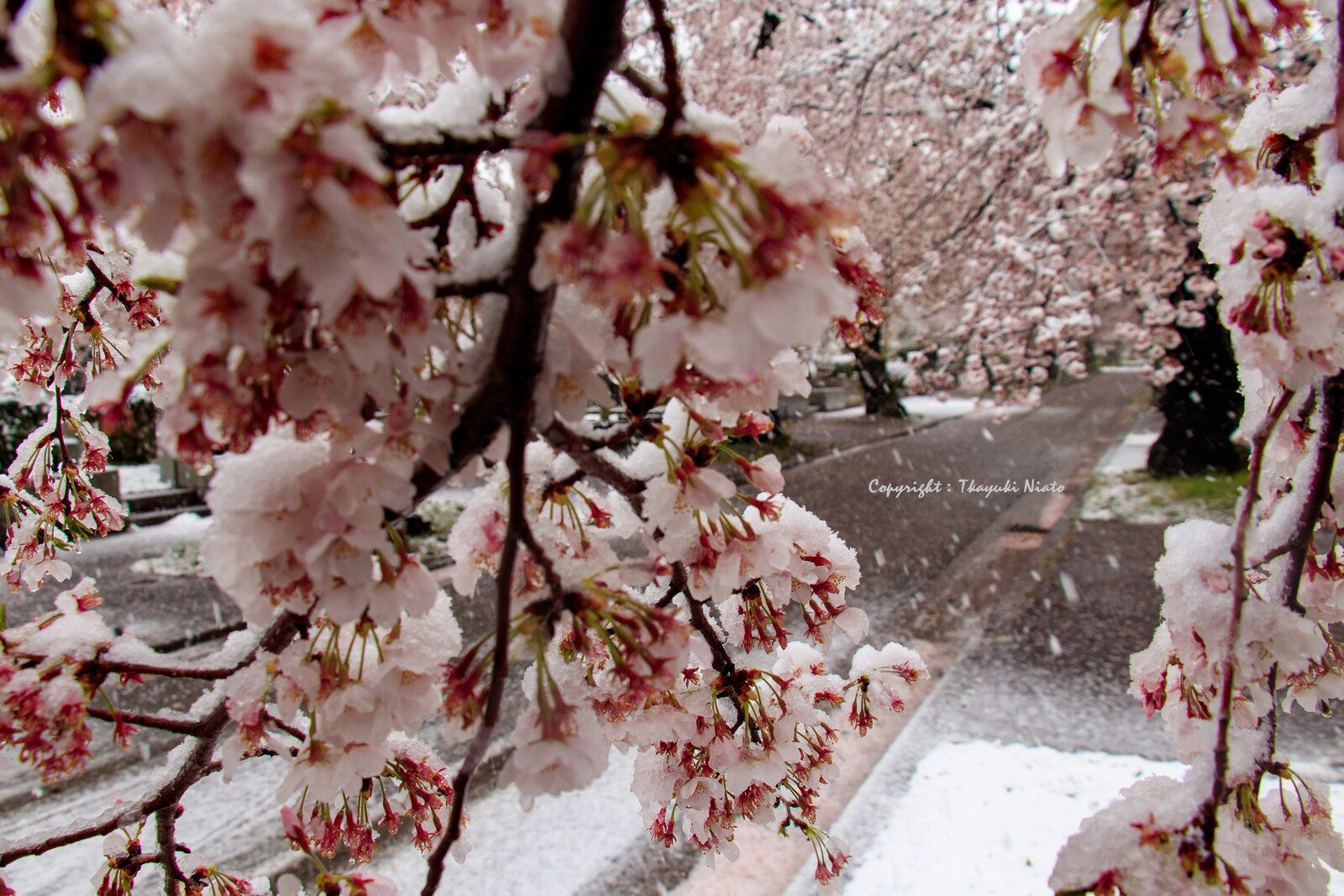 雪と桜なんて滅多に無い被写体を数十枚カメラに収めること30分