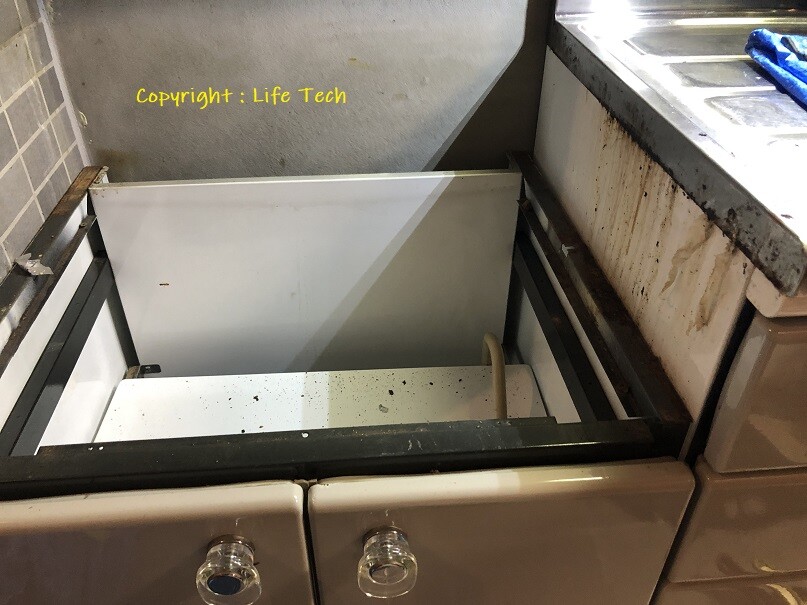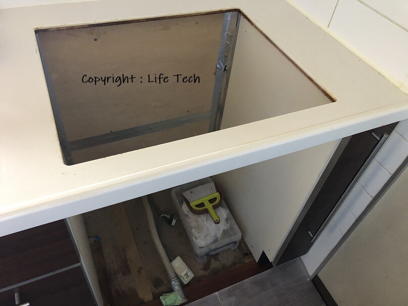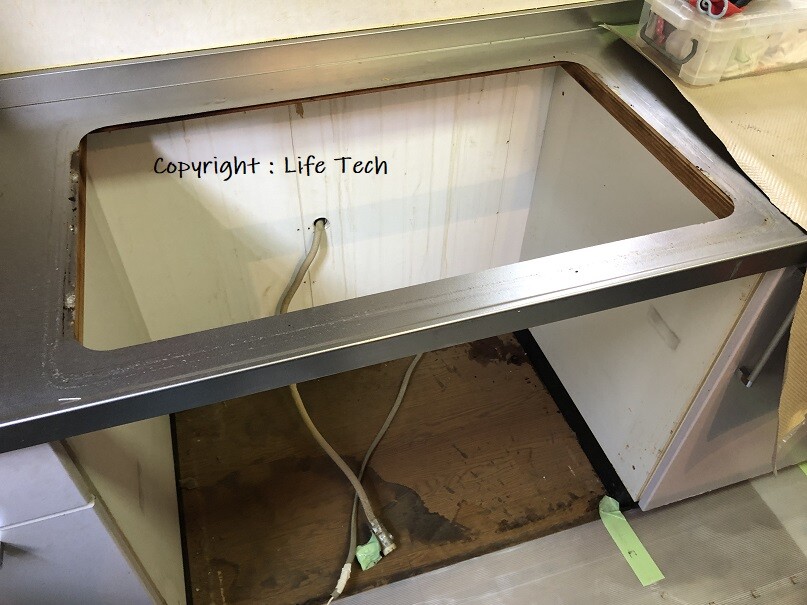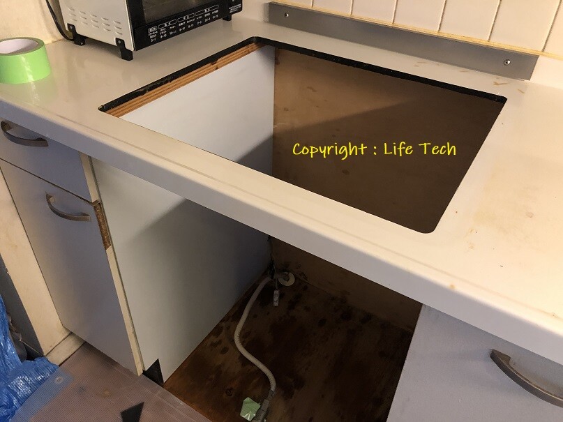 これから新しいキャビネット、オーブンを入れちゃえば隠れるんですけどね