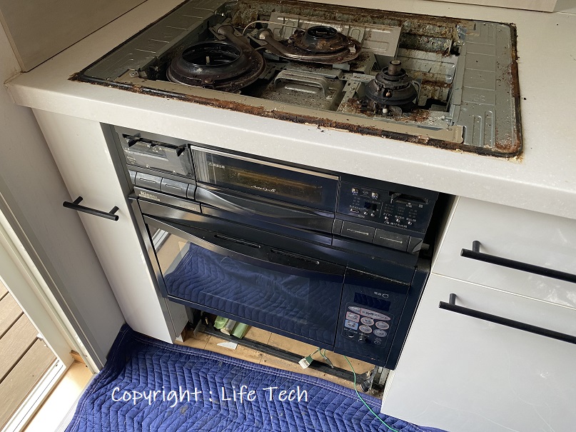 今回は衣類乾燥機・コンロ・オーブンと給湯器の交換現場