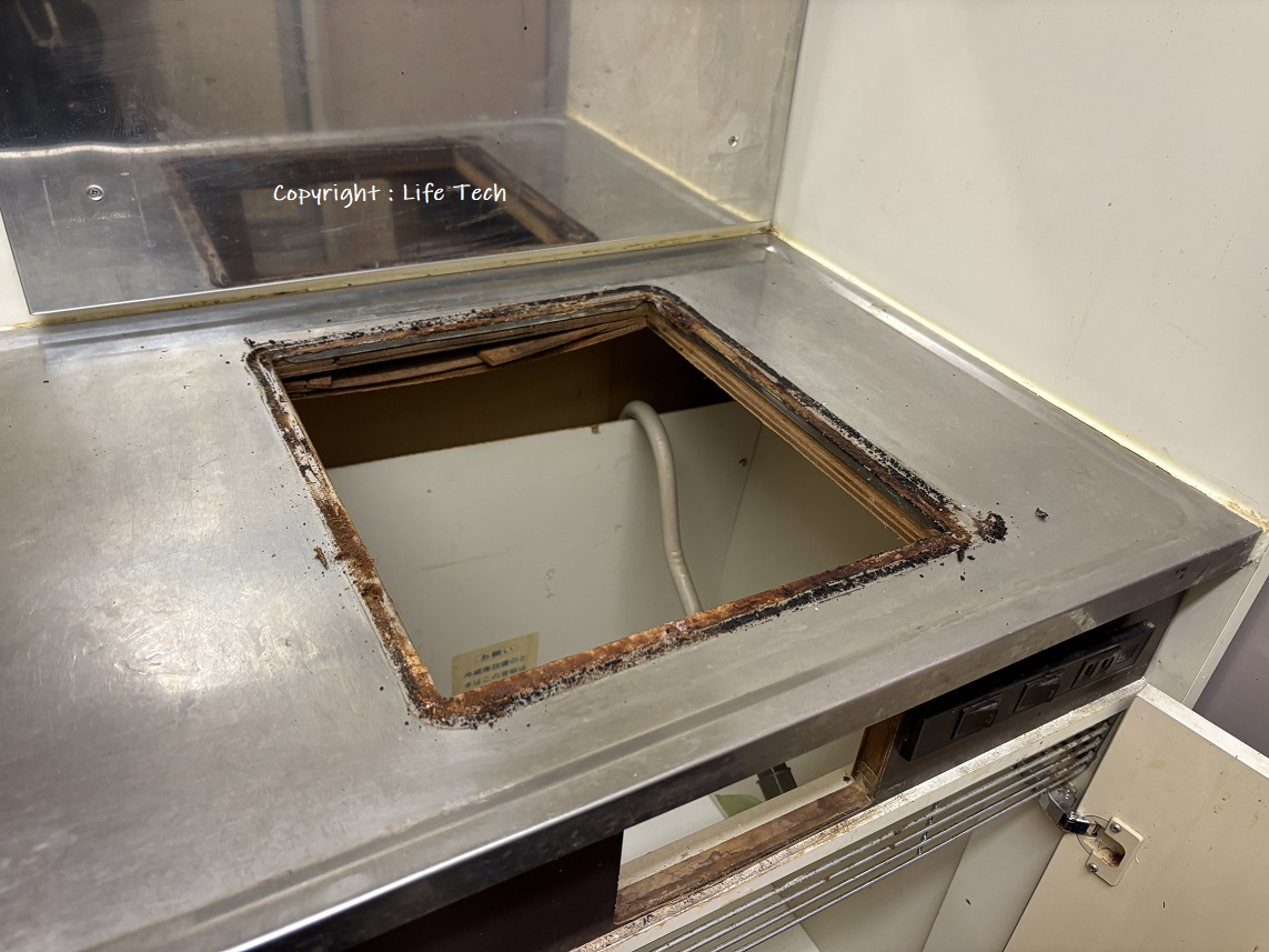これは現地調査時に幕板を外しダクト位置の確認の写真ですが