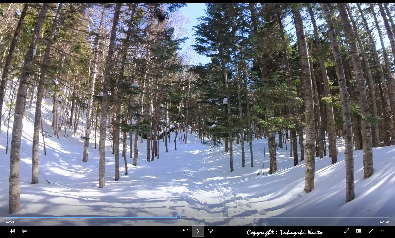 まずはしっかり雪が積もった樹林帯を進みます